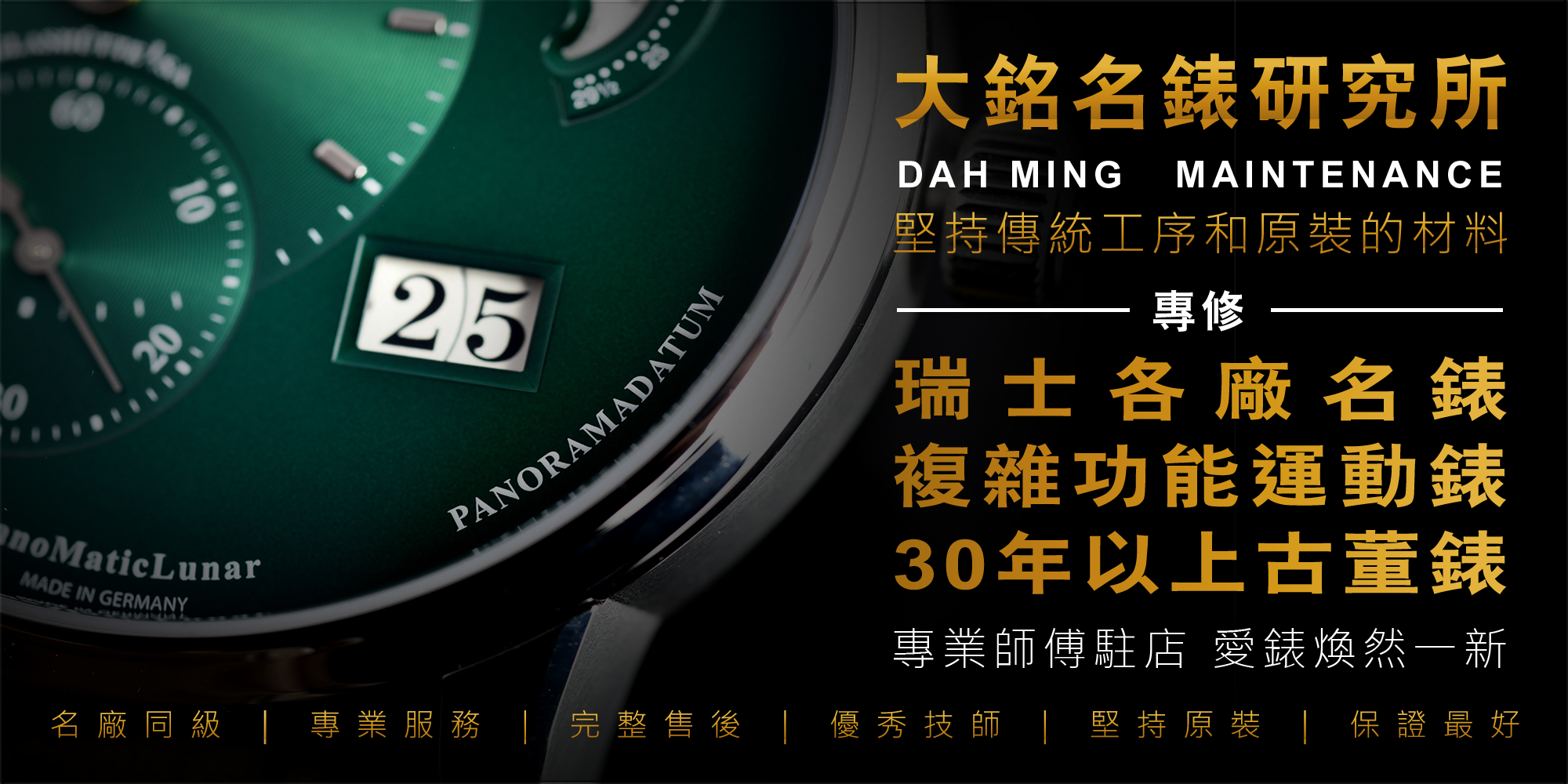 保固年限依各廠牌原廠保固期限而定,品牌的直營專櫃亦可接受維修保養的服務。客戶在本店購買的全新機械名錶自購買日起,除了原廠的售後服務與品質保證外,另享本店的保證保固服務。