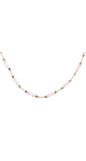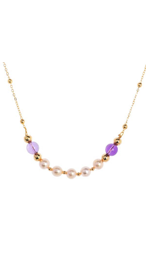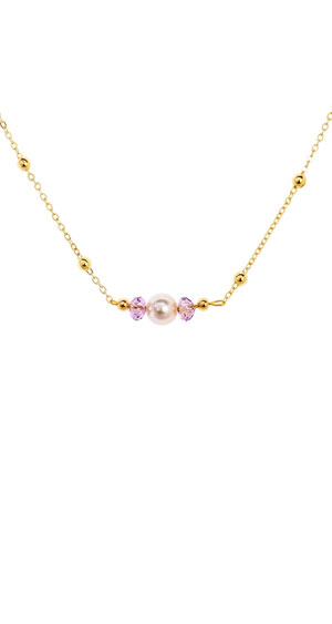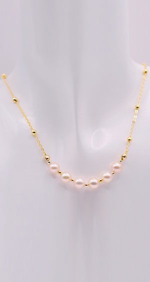 EM【eileen me】日本天然金帶粉色AKOYA珍珠 7mm 包黃K金項鍊 套鍊