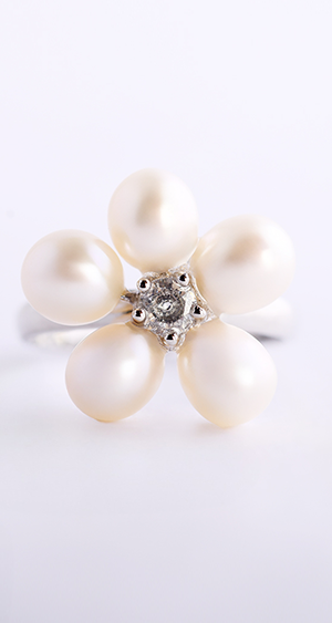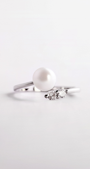 六月誕生石 珍珠 鑽石戒指