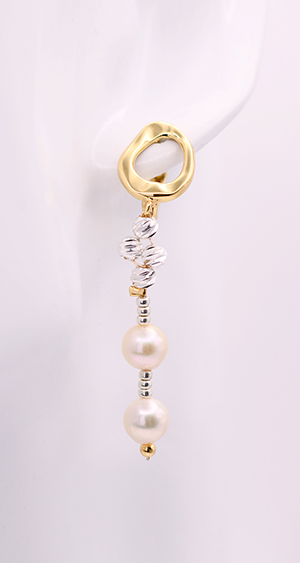 EM【eileen me】日本 AKOYA珍珠 氣質不規則珍珠吊墜耳環 18K黃金耳針