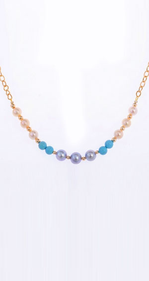 EM【eileen me】日本天然金帶粉色AKOYA珍珠+綠松石 7mm 包黃K金項鍊 套鍊