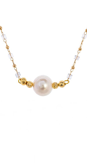 EM【eileen me】星願 天然白色淡水珍珠 7mm 包黃K金項鍊 套鍊