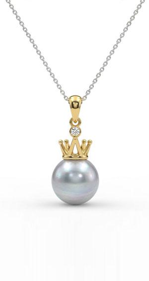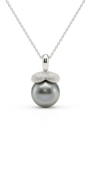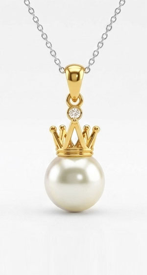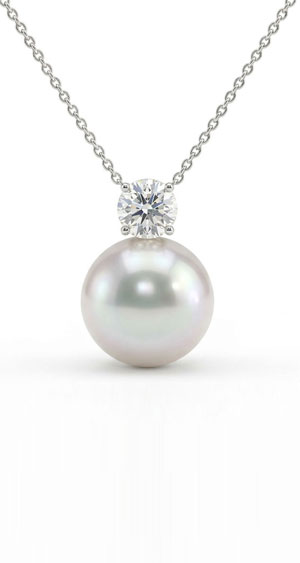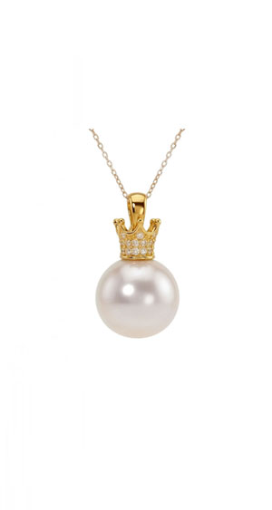 莎拉 18K白金鑲鑽珍珠吊墜