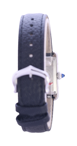 石英機芯請注意:每一至兩年需更換電池。TANK MUST 小型款,方形坦克腕錶系列,不鏽鋼材質。銀色錶盤,搭配卡地亞經典羅馬數字、藍鋼針、藍寶石鏡面。