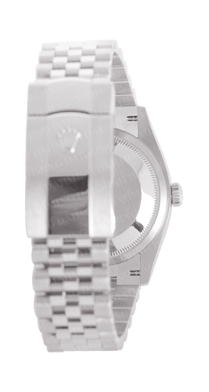 精鋼材質,日期窗,白K金坑紋太陽圈。經典五珠帶,新款藍錶面。