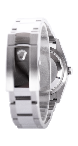 精鋼材質,日期窗,休閒三版帶,熱門費德勒面,灰色放射紋錶面帶綠色羅馬數字。