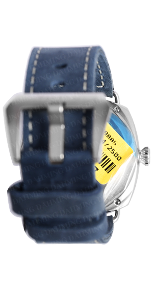 精鋼材質。漸層藍面盤,附夜光阿拉伯數字及小時標示。深藍色小牛皮錶帶。